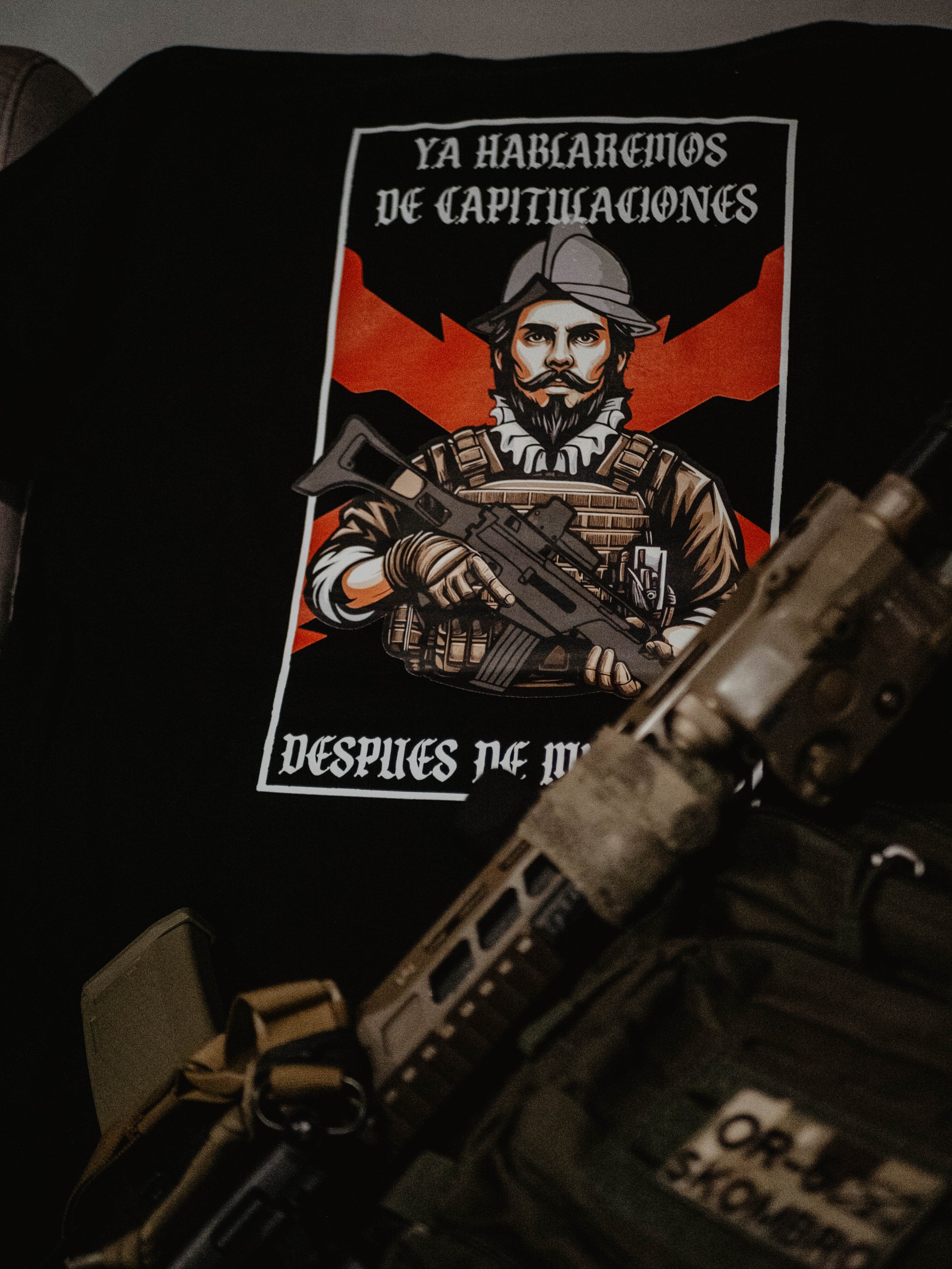 No es ropa técnica ni táctica funcional. Es merchandising oficial de colaboración, diseñada como símbolo de identidad, carácter y pertenencia a una comunidad que entiende la preparación como una actitud ante la vida.